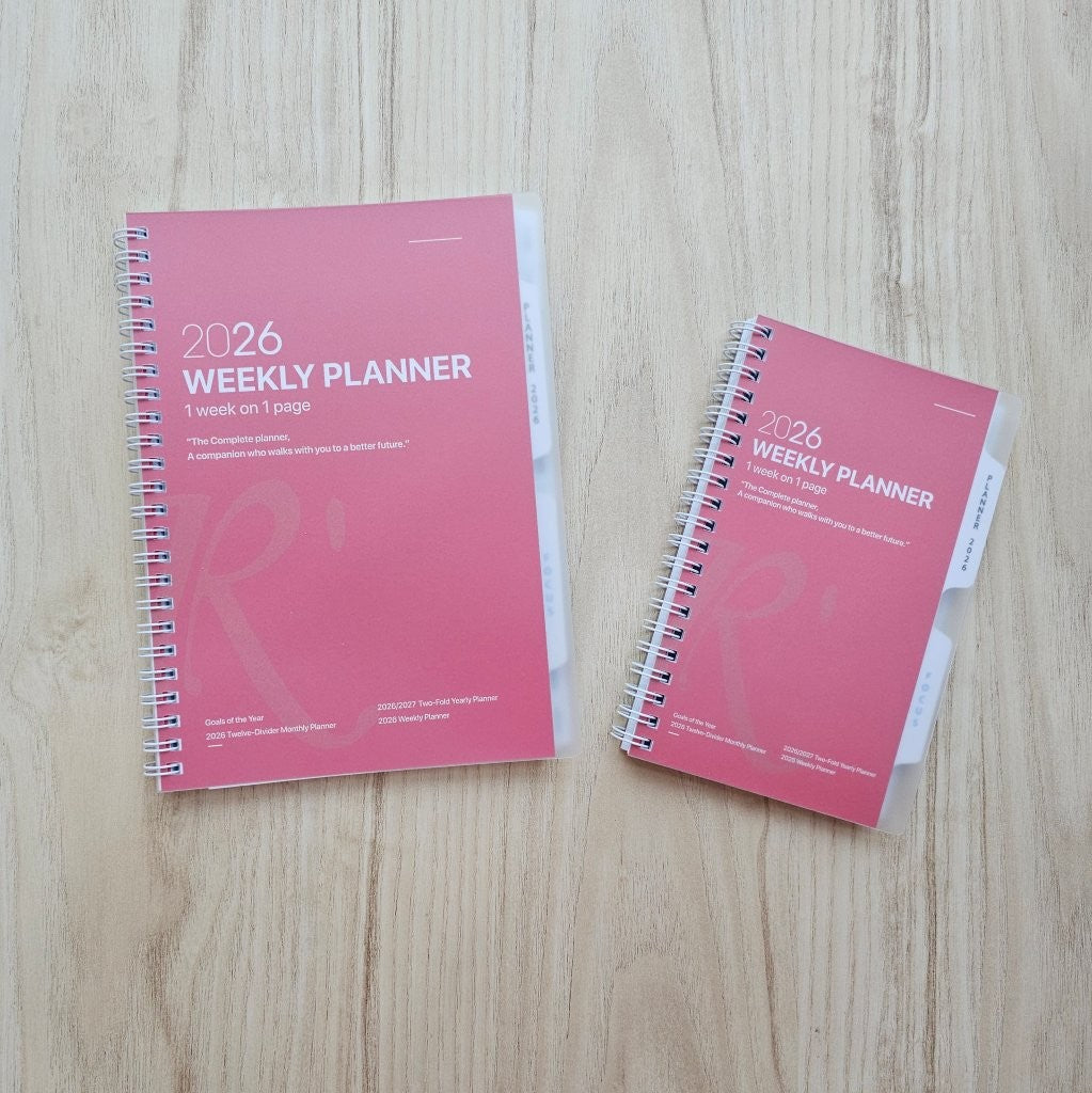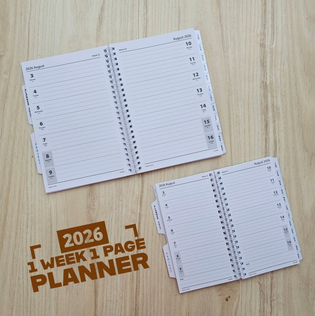 - 1 set x Year 2026 weekly planner (1 week on 1-page)